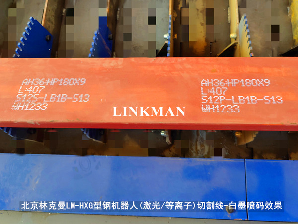 LM-HXG船舶建造型材机器人切割线,按照上料、喷码、切割、分拣、下料等工序布局,与AM(Tribon)/SPD等用户船舶建造设计软件自动对接,实现(球扁钢、角钢、扁钢)工件自动编程,优化套排料,数据统计,喷码打标和自动切割。