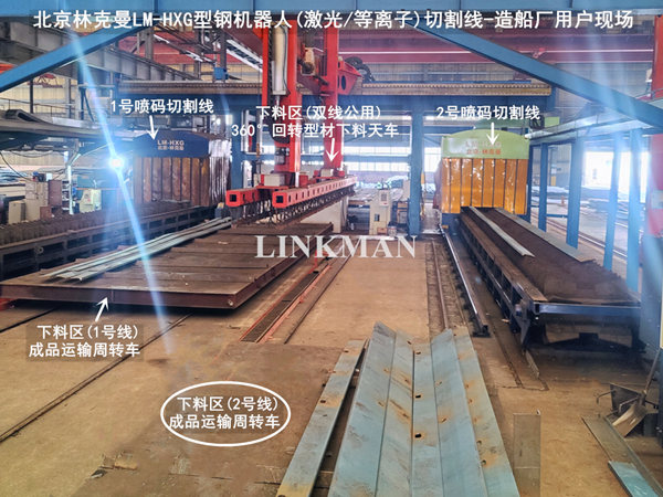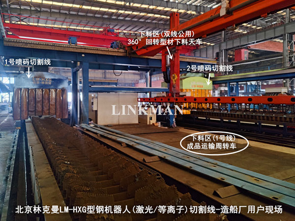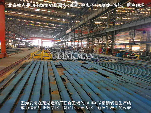 LM-HXG船舶建造型材机器人切割线不仅可以大幅提高海工、造船厂生产效率和工件质量,还能够进一步减少车间生产人员和管理成本,为海工造船厂大型构件提供了工件尺寸精准、焊接坡口整洁等条件。
