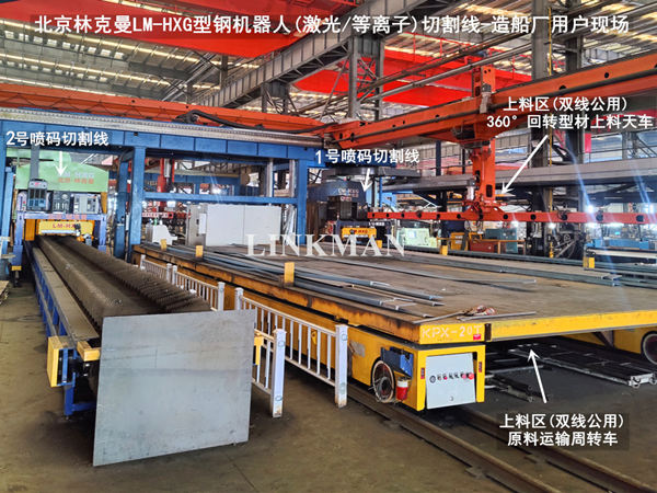日前,LM-HXG船舶建造型材机器人切割双线项目完成交付。LINKMAN品牌在努力提升新质生产力和完善现代化船舶建造技术、工艺等方面做出贡献。项目采用了双工位-双料台加工平台,由喷码、切割、监控操控台、除尘系统、离线编程套料软件、机床控制软件、等离子/激光电源等组成。切割双线项目一次可完成大型造船厂球扁钢-角钢工件的端头锁口、坡口切割、喷码打标及工艺孔、流水孔精确切割,可替代海工造船行业传统的人工放样划线、型材下料等落后生产工艺及设备。
